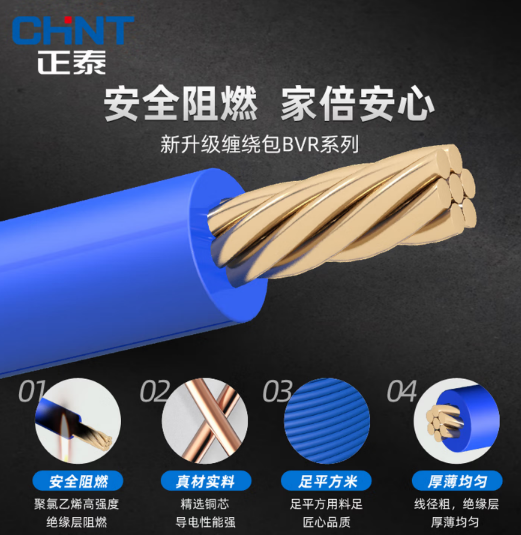 • 商品名称:正泰(CHNT) 电线电缆BVR国标铜芯线家装空调多股软线家用照明线足米 1.5平方-红色火线100米